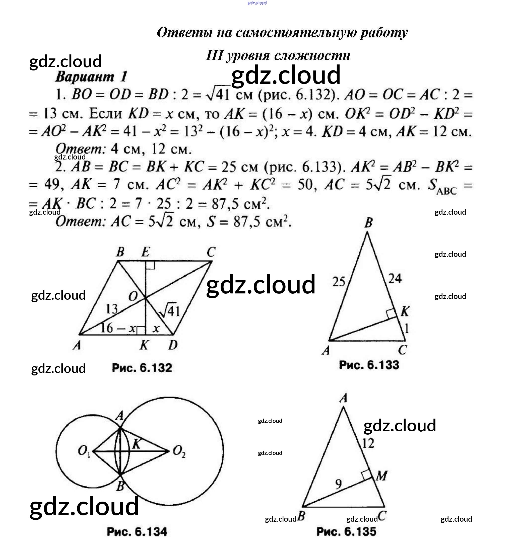 Уровень сложности 3 Самостоятельная работа 8 по Геометрии 8 класс Поурочные разработки Гаврилова    ВАКО