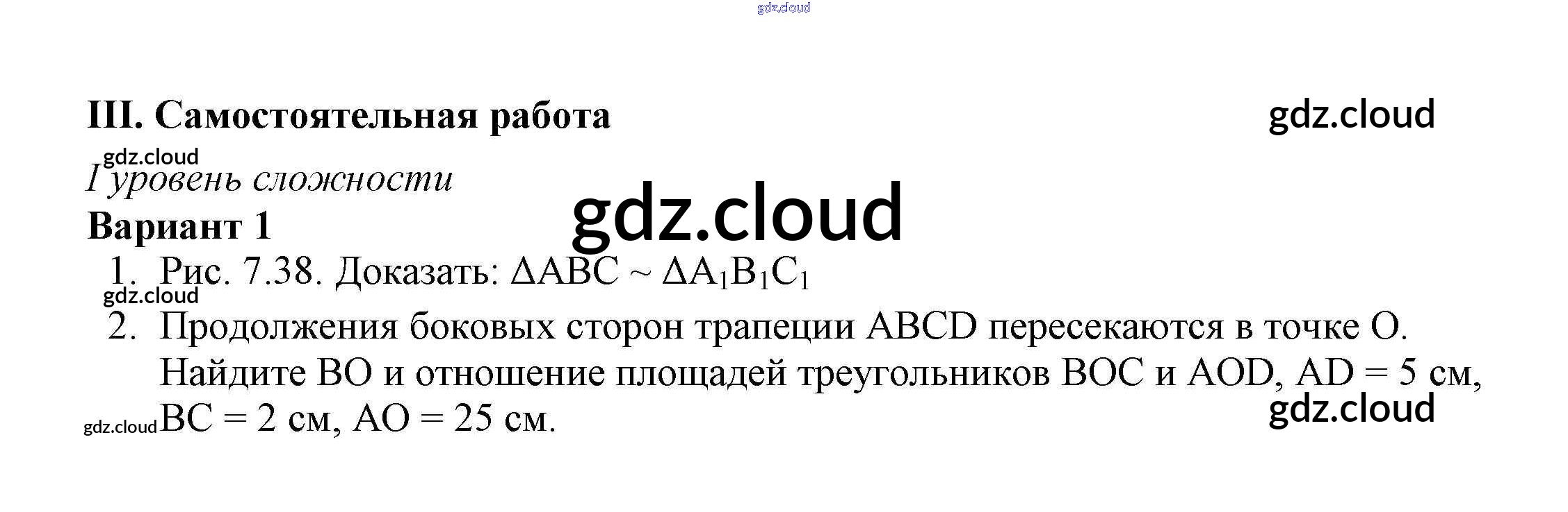 Уровень сложности 1 Самостоятельная работа 9 по Геометрии 8 класс Поурочные разработки Гаврилова    ВАКО