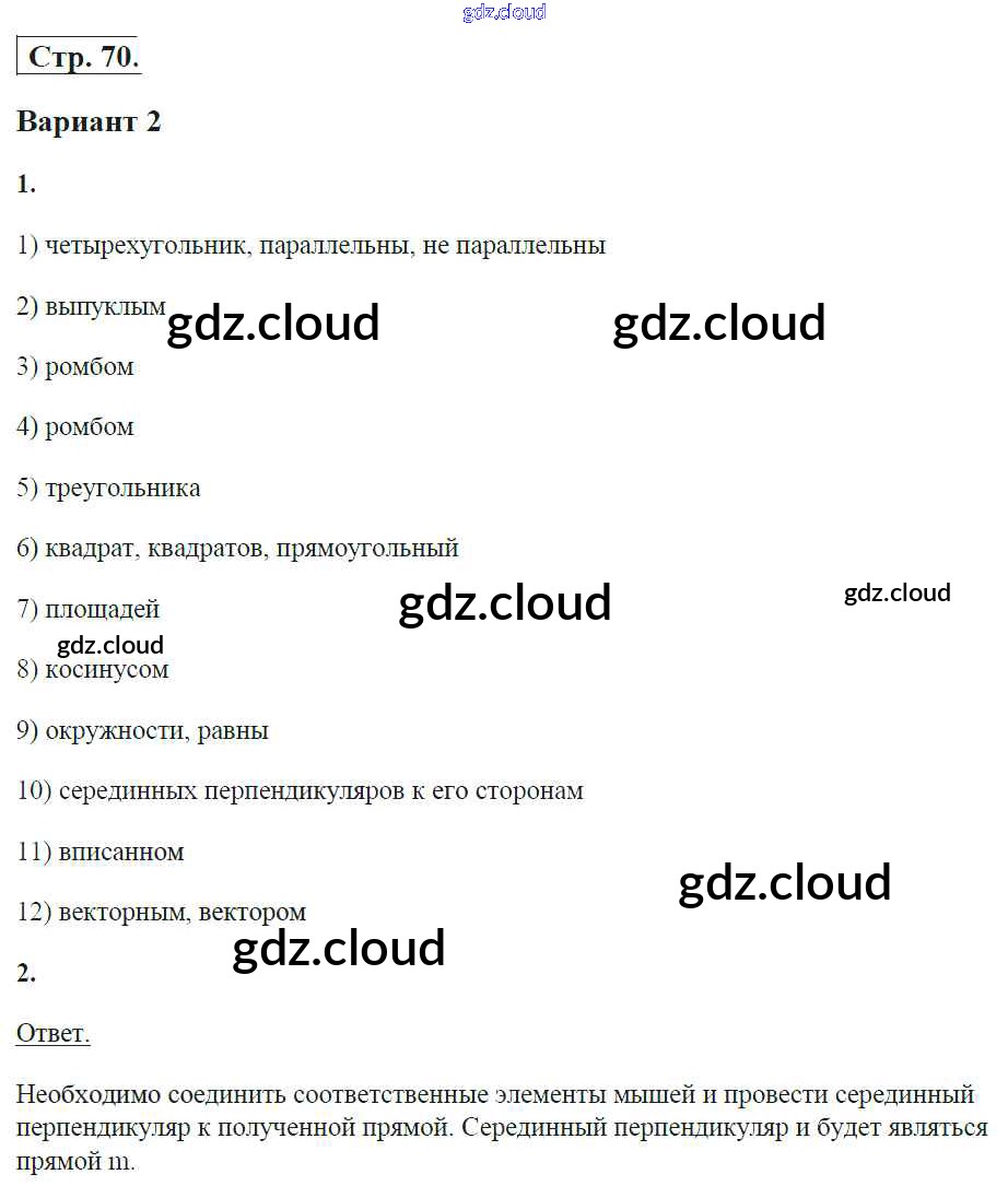 Ответ на задание 70 Рабочая тетрадь Геометрия за 8 (восьмой) класс Глазков, Егупова УМК 2017 ФГОС онлайн и без номера телефона.