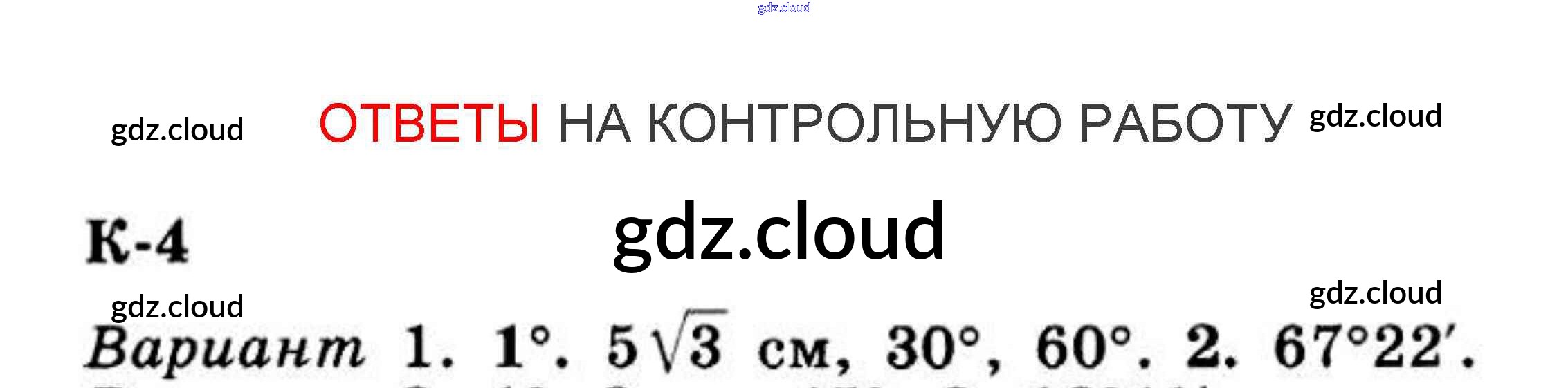 Ответы к контрольной работе 4 (Варианты) по Геометрии 8 класс Дидактические материалы Гусев Просвещение