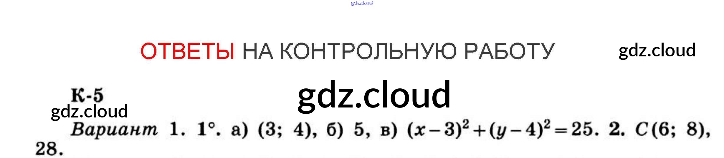 Ответы к контрольной работе 5 (Варианты) по Геометрии 8 класс Дидактические материалы Гусев Просвещение