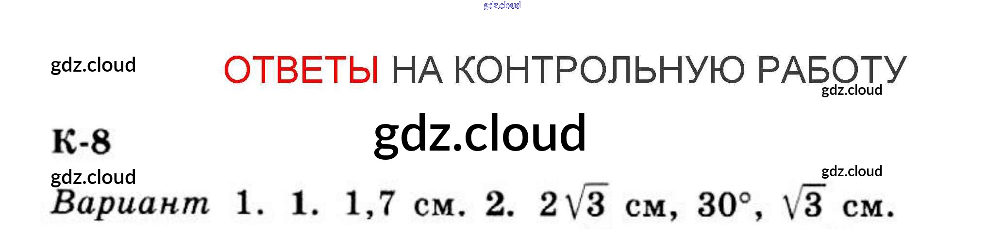 Ответы к контрольной работе 8 (Варианты) по Геометрии 8 класс Дидактические материалы Гусев Просвещение