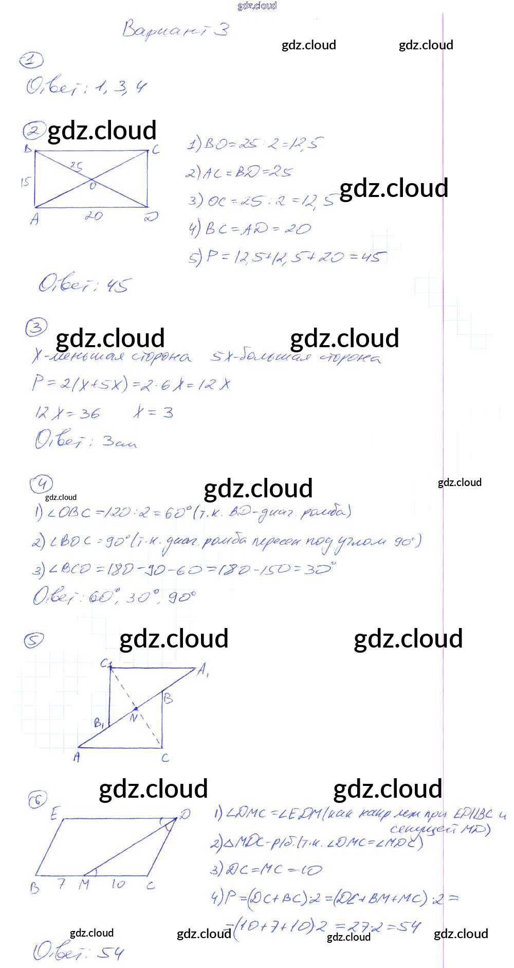 Ответы к КР-1. Четырехугольники по Геометрии 8 класс Контрольные работы Мельникова УМК Экзамен