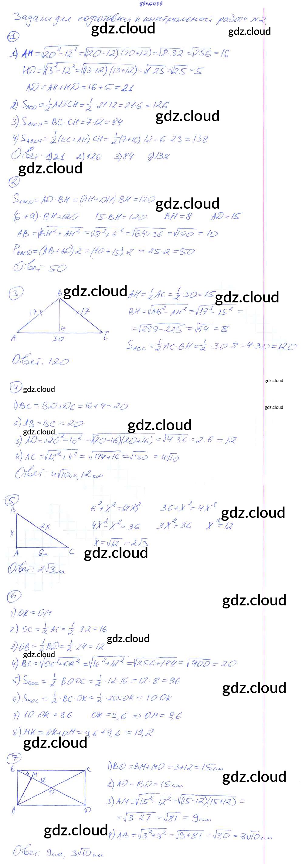 Ответ на задание Задачи для подготовки к контрольной работе Контрольные работы Геометрия за 8 (восьмой) класс Мельникова УМК 2013