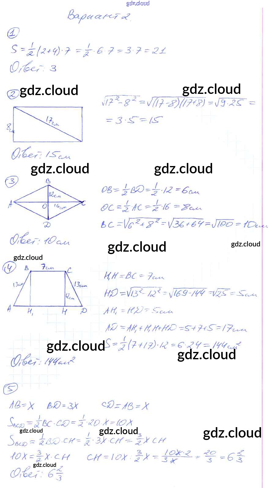 Ответ на задание Вариант №2 Контрольные работы Геометрия за 8 (восьмой) класс Мельникова УМК 2013