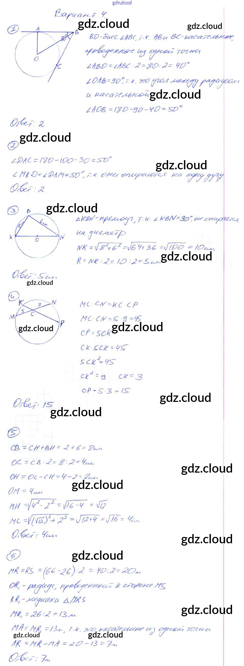 Ответы к КР-4. Окружность по Геометрии 8 класс Контрольные работы Мельникова УМК Экзамен