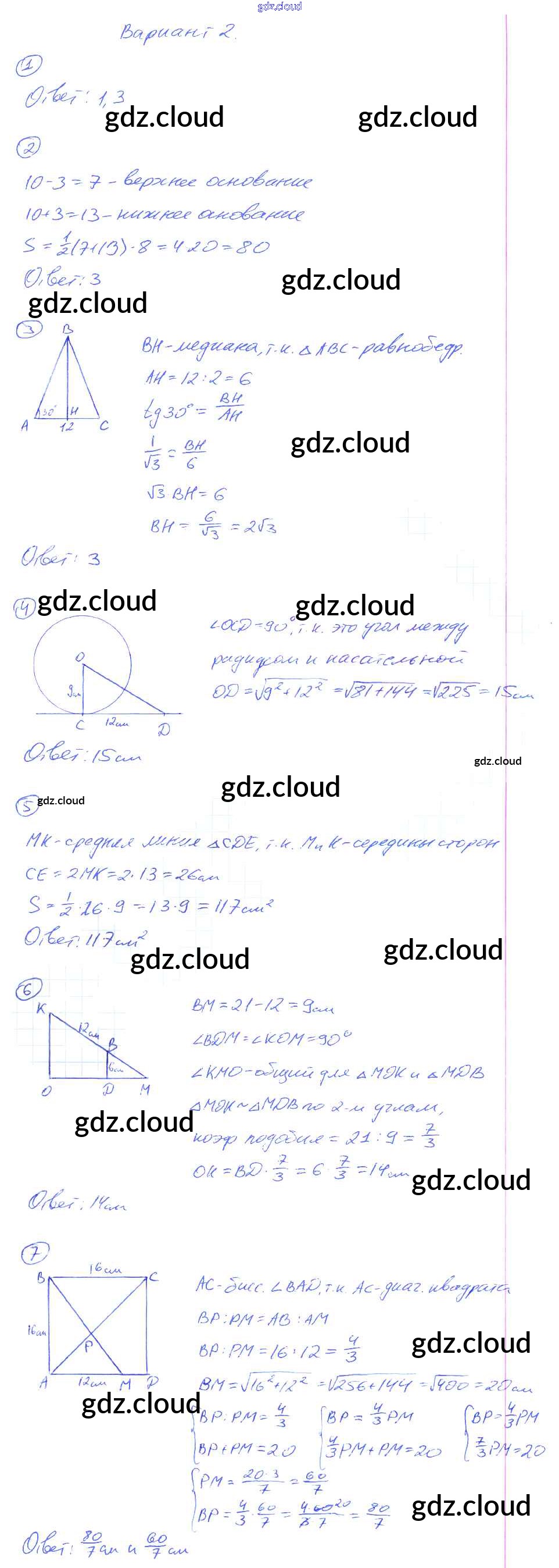 Ответ на задание Вариант №2 Контрольные работы Геометрия за 8 (восьмой) класс Мельникова УМК 2013