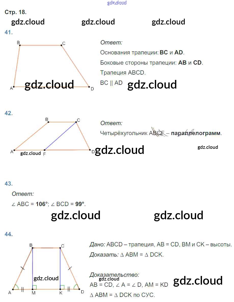 Ответ на задание 18 Рабочая тетрадь Геометрия за 8 (восьмой) класс Мищенко УМК 2016 ФГОС онлайн и без номера телефона.