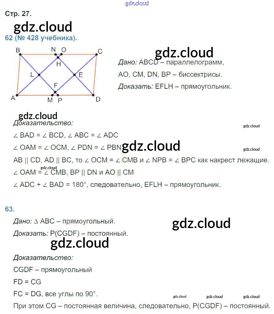 Ответ на задание 27 Рабочая тетрадь Геометрия за 8 (восьмой) класс Мищенко УМК 2016 ФГОС онлайн и без номера телефона.