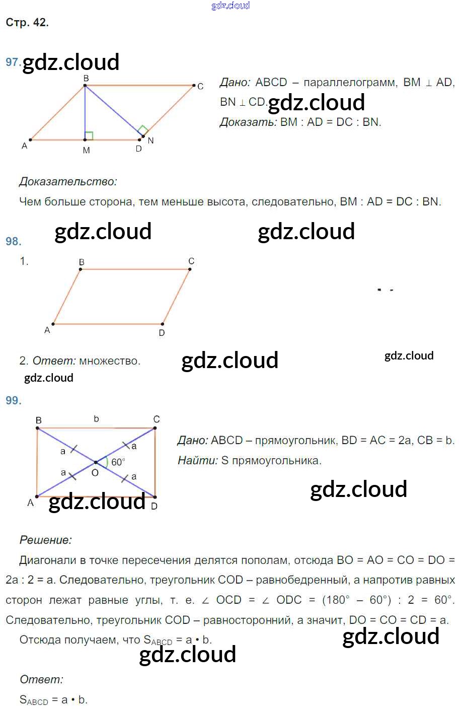 Ответ на задание 42 Рабочая тетрадь Геометрия за 8 (восьмой) класс Мищенко УМК 2016 ФГОС онлайн и без номера телефона.