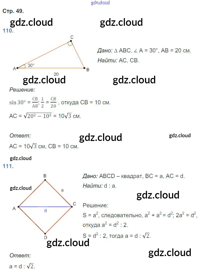 Ответ на задание 49 Рабочая тетрадь Геометрия за 8 (восьмой) класс Мищенко УМК 2016 ФГОС онлайн и без номера телефона.