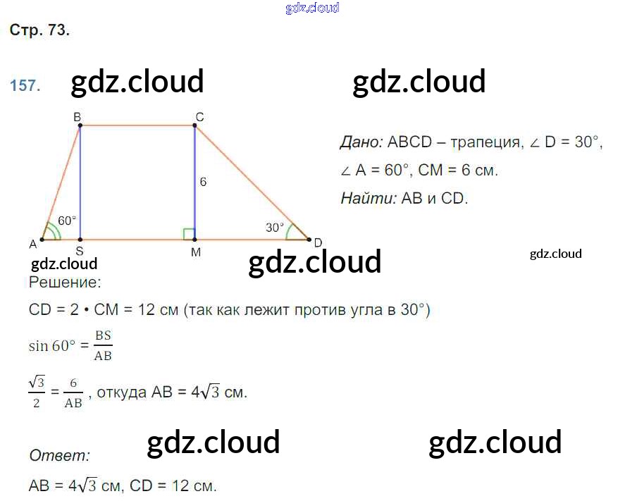 Ответ на задание 73 Рабочая тетрадь Геометрия за 8 (восьмой) класс Мищенко УМК 2016 ФГОС онлайн и без номера телефона.