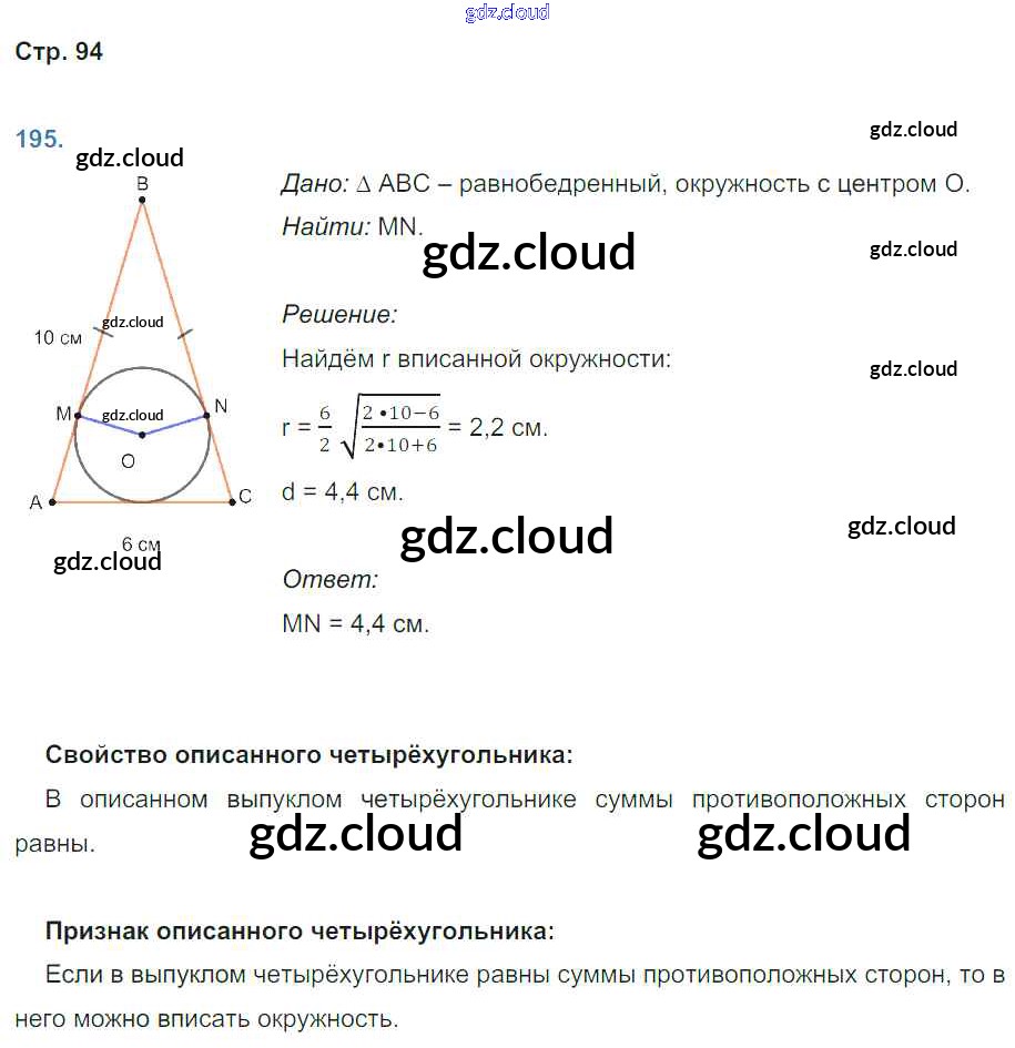 Ответ на задание 94 Рабочая тетрадь Геометрия за 8 (восьмой) класс Мищенко УМК 2016 ФГОС онлайн и без номера телефона.