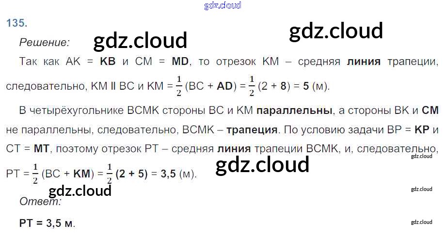 Ответ на задание 135 Рабочая тетрадь Геометрия за 8 (восьмой) класс Атанасян, Бутузов, Глазков, Юдина 2019
