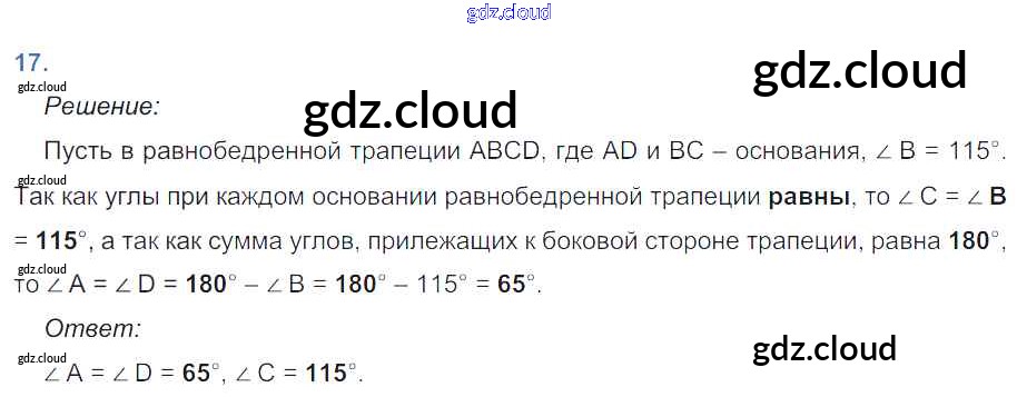 Ответ на задание 17 Рабочая тетрадь Геометрия за 8 (восьмой) класс Атанасян, Бутузов, Глазков, Юдина 2019