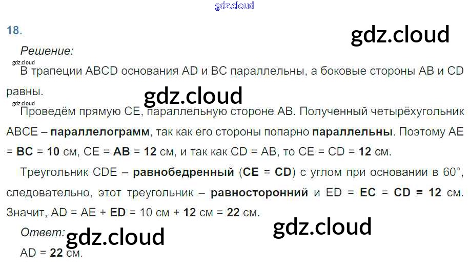 Ответ на задание 18 Рабочая тетрадь Геометрия за 8 (восьмой) класс Атанасян, Бутузов, Глазков, Юдина 2019