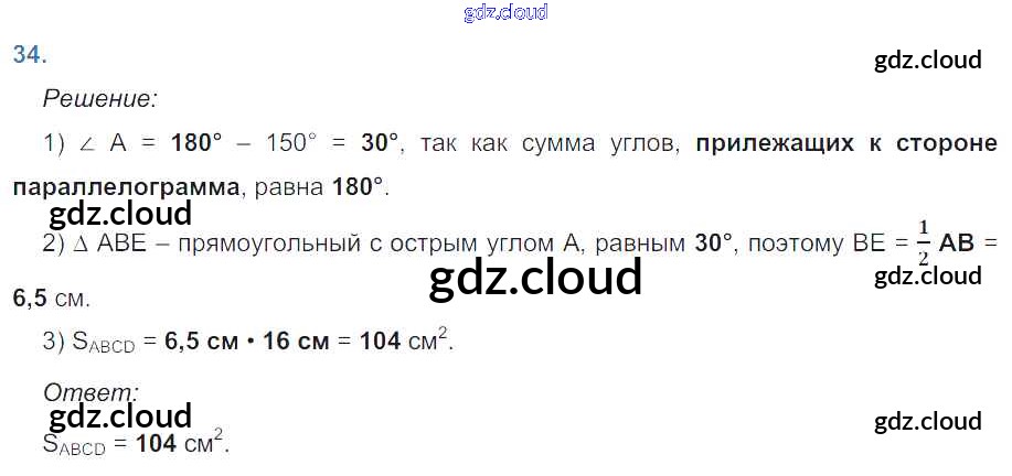 Ответ на задание 34 Рабочая тетрадь Геометрия за 8 (восьмой) класс Атанасян, Бутузов, Глазков, Юдина 2019