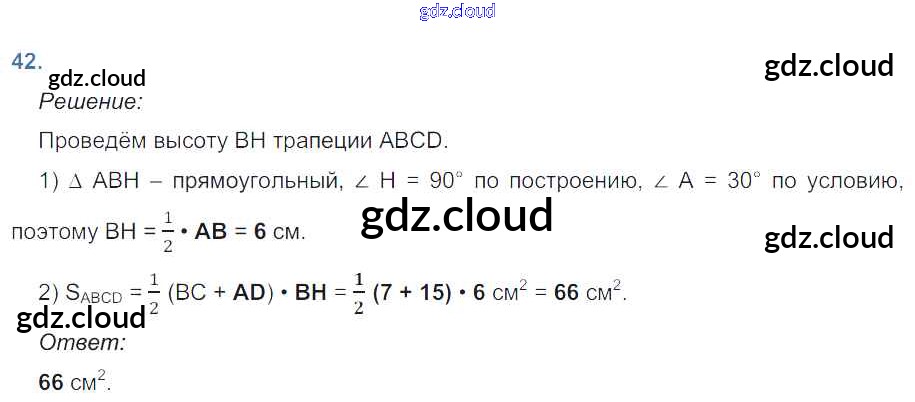 Ответ на задание 42 Рабочая тетрадь Геометрия за 8 (восьмой) класс Атанасян, Бутузов, Глазков, Юдина 2019 ФГОС онлайн и без номера телефона.