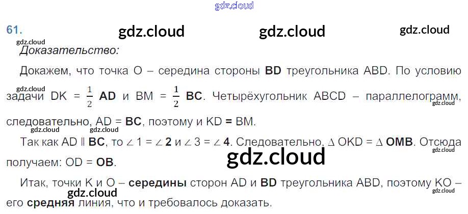 Ответ на задание 61 Рабочая тетрадь Геометрия за 8 (восьмой) класс Атанасян, Бутузов, Глазков, Юдина 2019