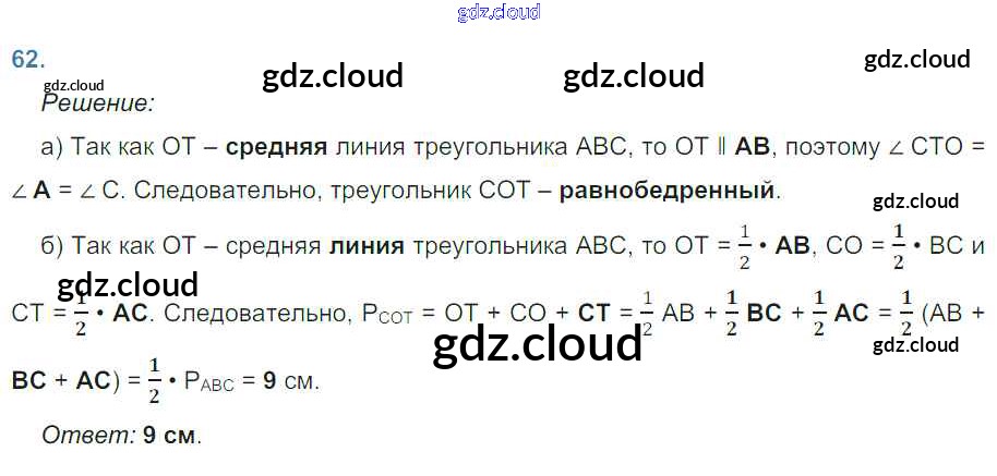 Ответ на задание 62 Рабочая тетрадь Геометрия за 8 (восьмой) класс Атанасян, Бутузов, Глазков, Юдина 2019