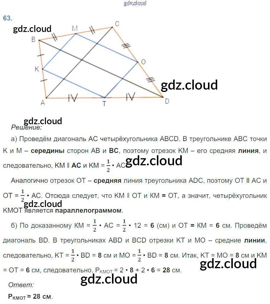Ответ на задание 63 Рабочая тетрадь Геометрия за 8 (восьмой) класс Атанасян, Бутузов, Глазков, Юдина 2019
