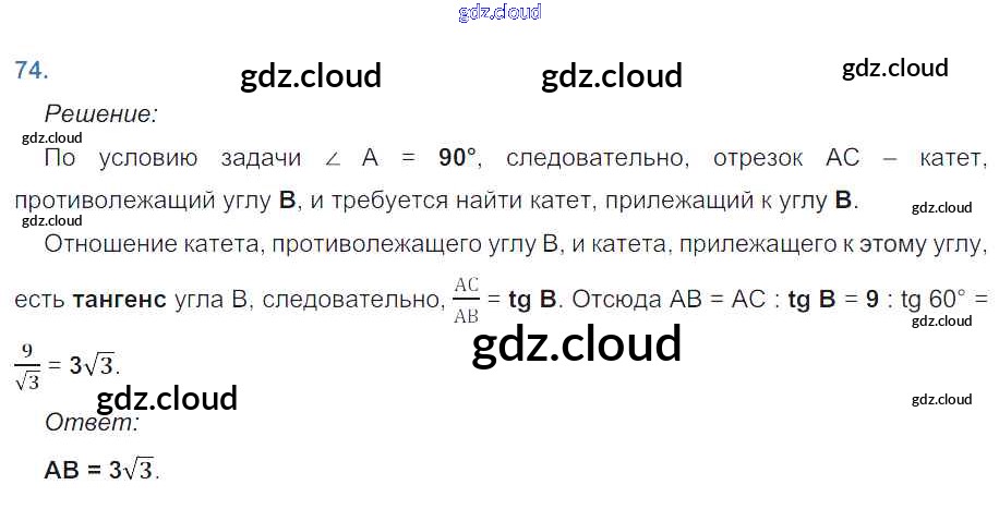 Ответ на задание 74 Рабочая тетрадь Геометрия за 8 (восьмой) класс Атанасян, Бутузов, Глазков, Юдина 2019