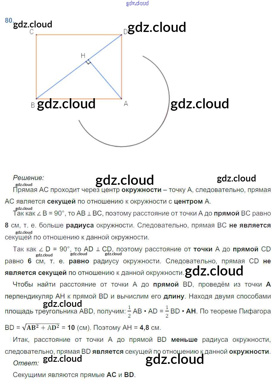 Ответ на задание 80 Рабочая тетрадь Геометрия за 8 (восьмой) класс Атанасян, Бутузов, Глазков, Юдина 2019
