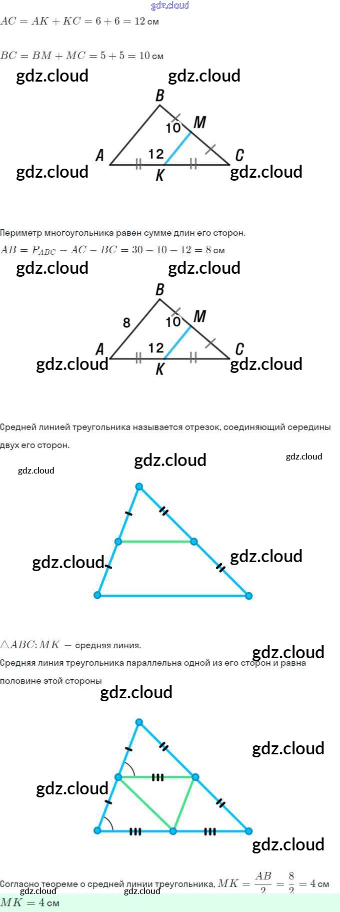 Ответы. §7. Средняя линия треугольника по Геометрии 8 класс Рабочая тетрадь Мерзляк Алгоритм успеха Часть 1, 2 Вентана-граф