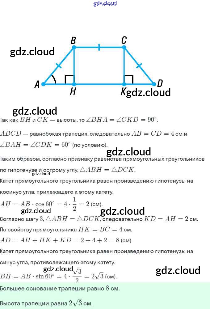 Ответы. §18. Решение прямоугольных треугольников по Геометрии 8 класс Рабочая тетрадь Мерзляк Алгоритм успеха Часть 1, 2 Вентана-граф