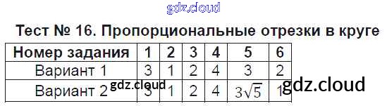 Ответ на задание Тест №16. Пропорциональные отрезки в круге Контрольно-измерительные материалы (КИМ) Геометрия за 8 (восьмой) класс Рязановский, Мухин 2014