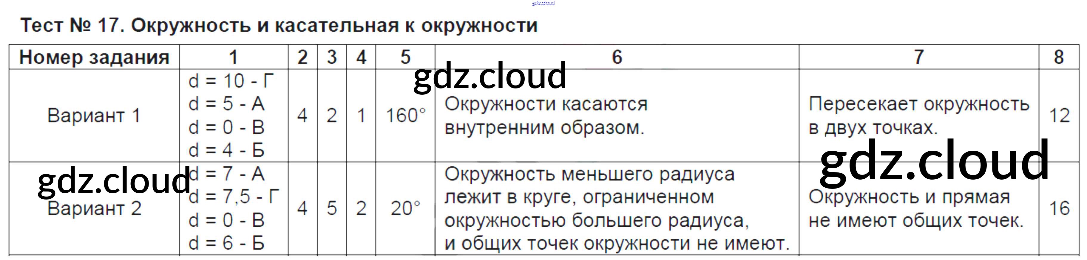Ответ на задание Тест №17. Окружность и касательная к окружности Контрольно-измерительные материалы (КИМ) Геометрия за 8 (восьмой) класс Рязановский, Мухин 2014