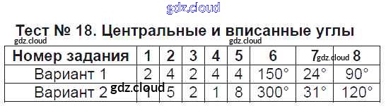 Ответ на задание Тест №18. Центральные и вписанные углы Контрольно-измерительные материалы (КИМ) Геометрия за 8 (восьмой) класс Рязановский, Мухин 2014