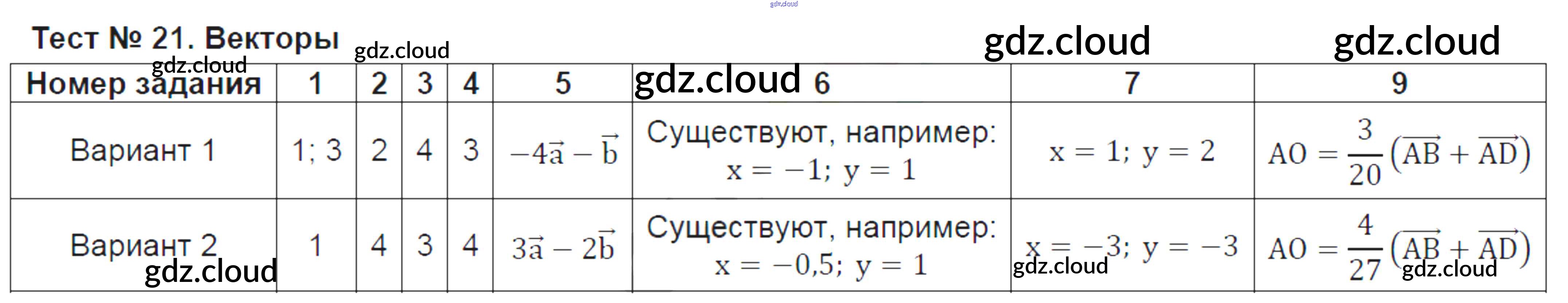 Ответ на задание Тест №21. Векторы Контрольно-измерительные материалы (КИМ) Геометрия за 8 (восьмой) класс Рязановский, Мухин 2014