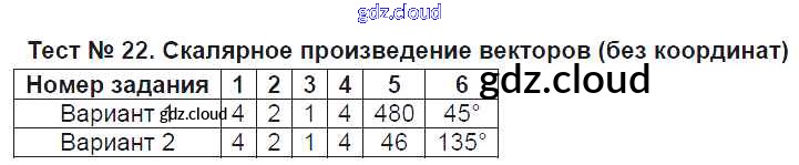Ответ на задание Тест №22. Скалярное произведение векторов Контрольно-измерительные материалы (КИМ) Геометрия за 8 (восьмой) класс Рязановский, Мухин 2014