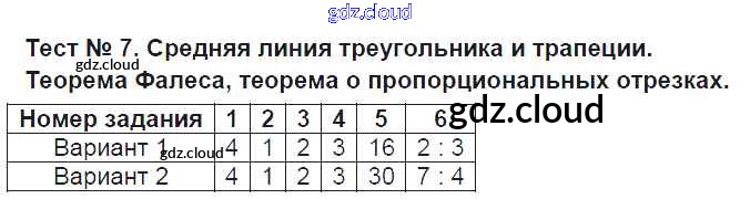 Ответ на задание Тест №7. Средняя линия треугольника и трапеции Контрольно-измерительные материалы (КИМ) Геометрия за 8 (восьмой) класс Рязановский, Мухин 2014
