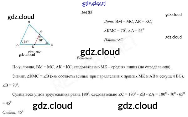 Ответ на задание 103 Учебник Геометрия за 8 (восьмой) класс Казаков 2018 онлайн и без номера телефона.