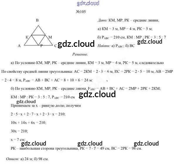 Ответ на задание 105 Учебник Геометрия за 8 (восьмой) класс Казаков 2018 онлайн и без номера телефона.