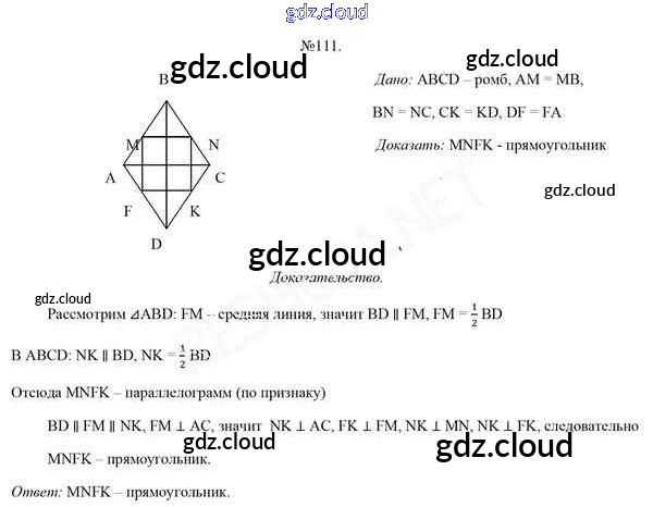 Ответ на задание 111 Учебник Геометрия за 8 (восьмой) класс Казаков 2018 онлайн и без номера телефона.