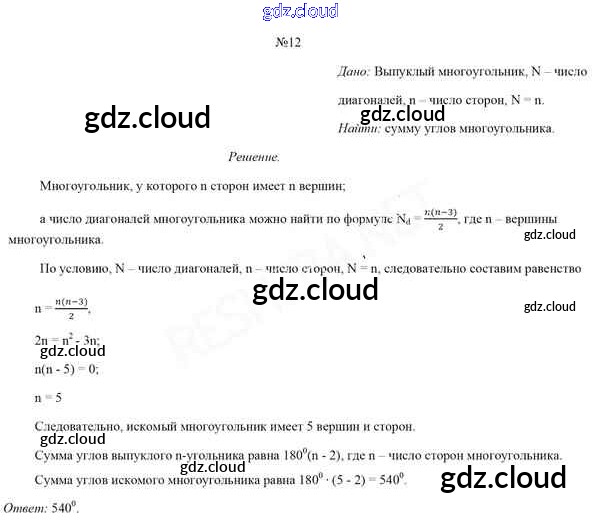 Ответ на задание 12 Учебник Геометрия за 8 (восьмой) класс Казаков 2018 онлайн и без номера телефона.