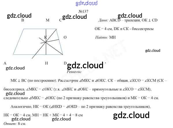 Ответ на задание 137 Учебник Геометрия за 8 (восьмой) класс Казаков 2018 онлайн и без номера телефона.