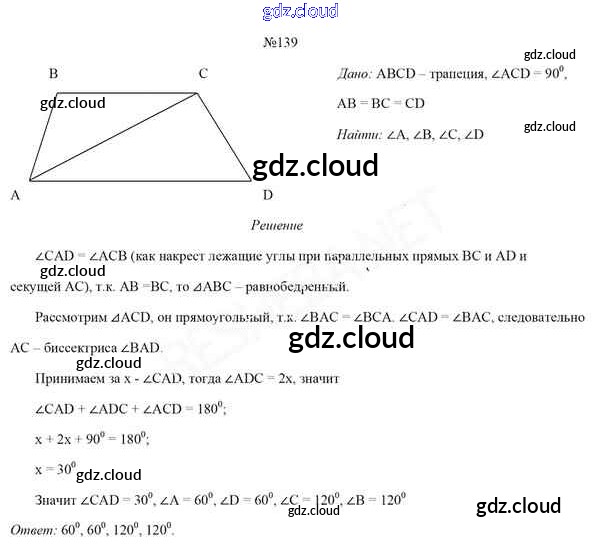 Ответ на задание 139 Учебник Геометрия за 8 (восьмой) класс Казаков 2018 онлайн и без номера телефона.