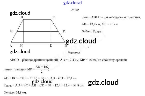 Ответ на задание 145 Учебник Геометрия за 8 (восьмой) класс Казаков 2018 онлайн и без номера телефона.