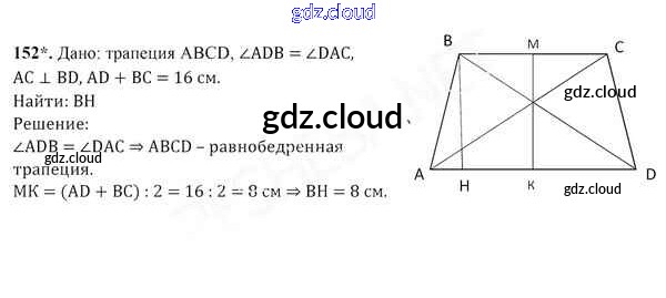 Ответ на задание 152 Учебник Геометрия за 8 (восьмой) класс Казаков 2018 онлайн и без номера телефона.