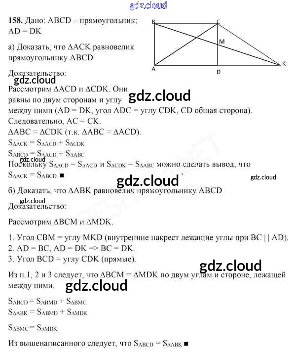 Ответ на задание 158 Учебник Геометрия за 8 (восьмой) класс Казаков 2018 онлайн и без номера телефона.