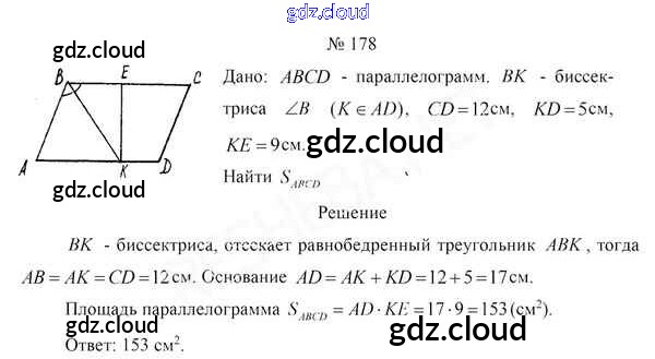 Ответ на задание 178 Учебник Геометрия за 8 (восьмой) класс Казаков 2018 онлайн и без номера телефона.