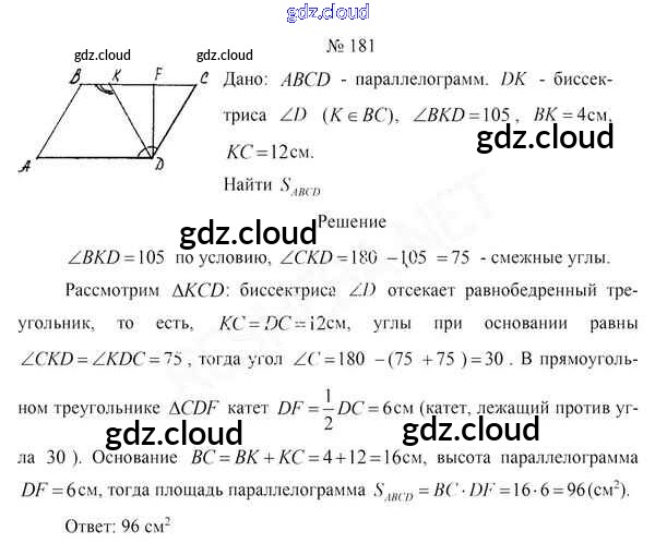 Ответ на задание 181 Учебник Геометрия за 8 (восьмой) класс Казаков 2018 онлайн и без номера телефона.
