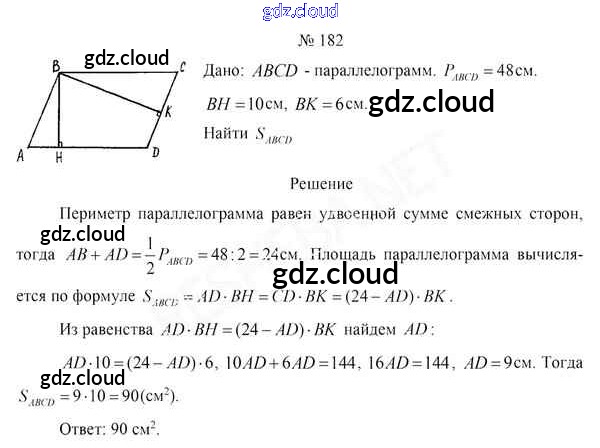 Ответ на задание 182 Учебник Геометрия за 8 (восьмой) класс Казаков 2018 онлайн и без номера телефона.