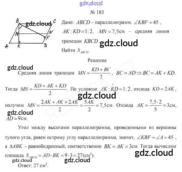 Ответ на задание 183 Учебник Геометрия за 8 (восьмой) класс Казаков 2018 онлайн и без номера телефона.