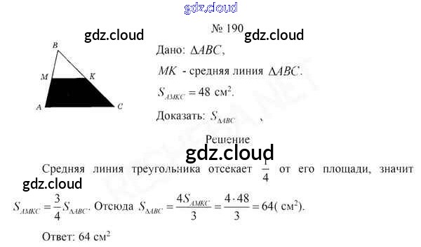 Ответ на задание 190 Учебник Геометрия за 8 (восьмой) класс Казаков 2018 онлайн и без номера телефона.