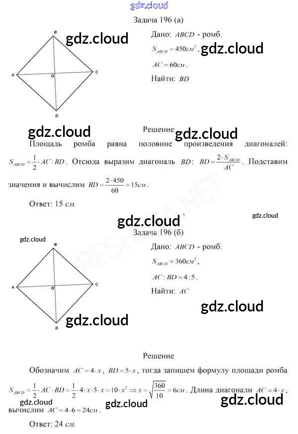 Ответ на задание 196 Учебник Геометрия за 8 (восьмой) класс Казаков 2018 онлайн и без номера телефона.